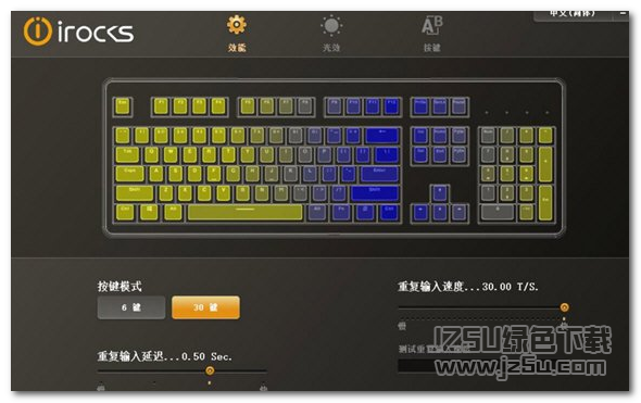 Ta-70钽系列键盘驱动是irocks官方为Ta-70静电容式键盘提供的驱动。该驱动提供6键及30键两种按键模式,重复输入速度和重复输入延迟功能设置。欢迎有兴趣的朋友前来jz5u下载Ta-70钽系列键盘驱动使用!