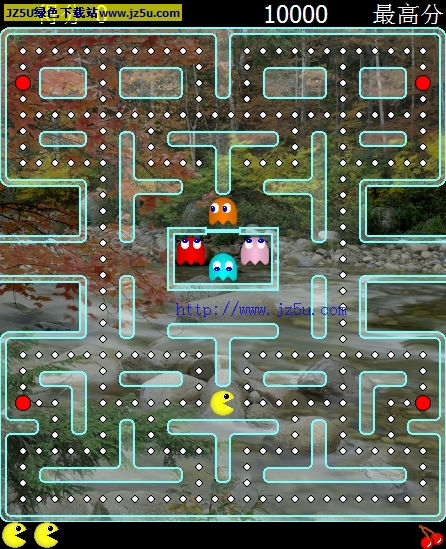 游戏规则不用小编重复了吧,玩家控制画面中央的吃豆大嘴,将画面中所有的白色小点吃完就可以获得该关卡的胜利。每一关中,都会有几只怪物追捕玩家,千万记得不要给他们碰到。画面中的大型圆点可以视为游戏的保险,玩家只要吃到之后,即可反客为主,在限定的时间内可以吃掉追捕你的怪物,一段时间后,当怪物们变回原来色彩时,游戏规则复原。方向键控制吃豆小子的四向移动。