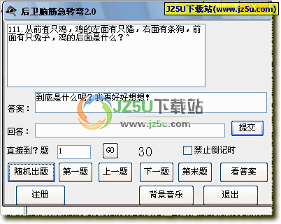 款为脑筋急转弯迷们打造的软件。未注册只可使用一个题库300条脑筋急转弯题,注册后可使用全部题库2000多条题库和日后的软件升级,还不快行动!