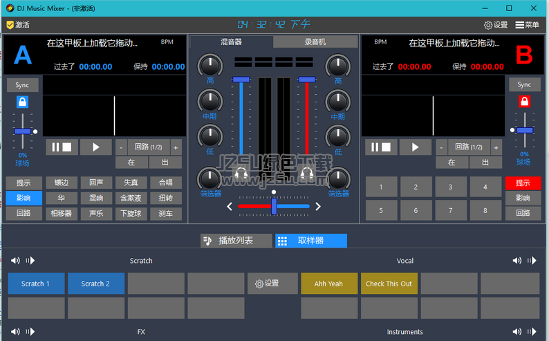 DJ混合器软件必不可少的元素,和DJ音乐调音台有12个独立的采样器面板装饰和记录器。你有房间负荷和录制音乐的部分很多。