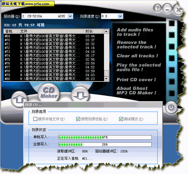 不到1M的mp3刻录软件下载ghostmp3cdmaker 绿色汉化版