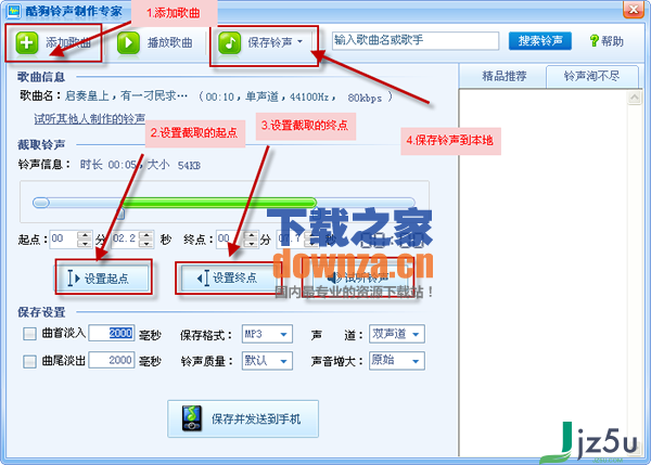 提取自酷狗音乐2010中的一个组件,屏蔽界面广告,只需经过简略几步就能制造出一首异乎寻常的归于自己的手机铃声!它不只支持淡入淡出的效果,并且还能够增大铃声等等,并且使用上十分的简略!