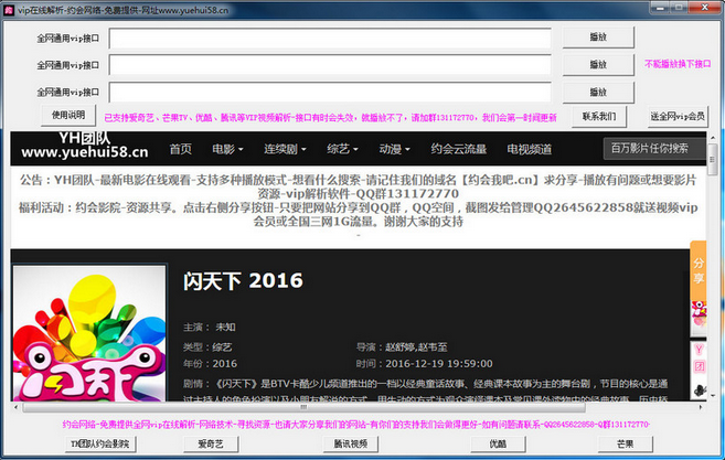 1、支持爱奇艺、腾讯、优酷、芒果TV等网站的会员大片解析;