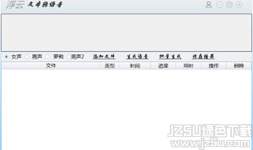 浮云文本转语音工具是款能够把文本文件转换成音频播放的工具。文本不能转换成音频?这里给大家带来浮云文本转语音工具,用户可以借助浮云文本转语音工具将文本的中文转换成语音播放的形式,有喜欢的用户不要错过了。欢迎大家来jz5u下载体验!