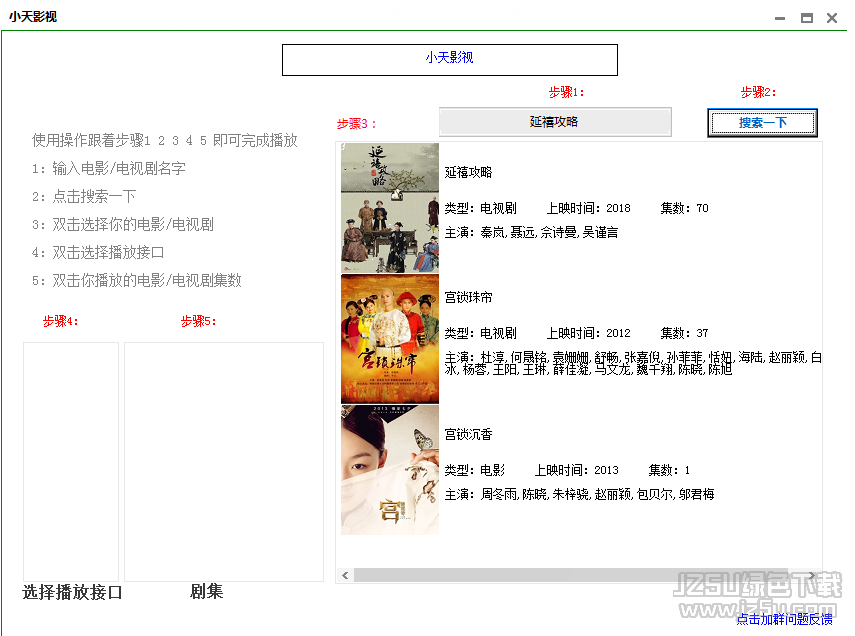 小天影视是一款非常实用的视频解析软件。软件简约的界面风格,强大的资源搜索引擎,输入对应的资源名称,即可帮你快速找到,无需付费,即可下载、播放,非常方便实用。并且软件的操作十分简单,即使是新手用户也可以很快上手。如果您有需要可以在jz5u下载这款小天影视。