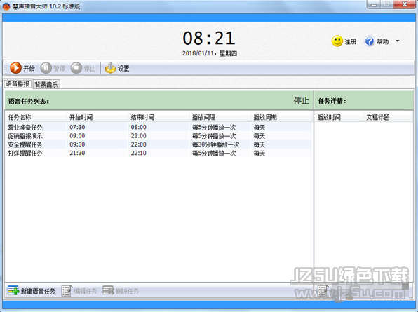 5、全球唯一一款具备智能感应式背景音乐功能的播音软件,语音播放时,音乐音量自动降低,语音播放结束,恢复音乐音量,动感十足。