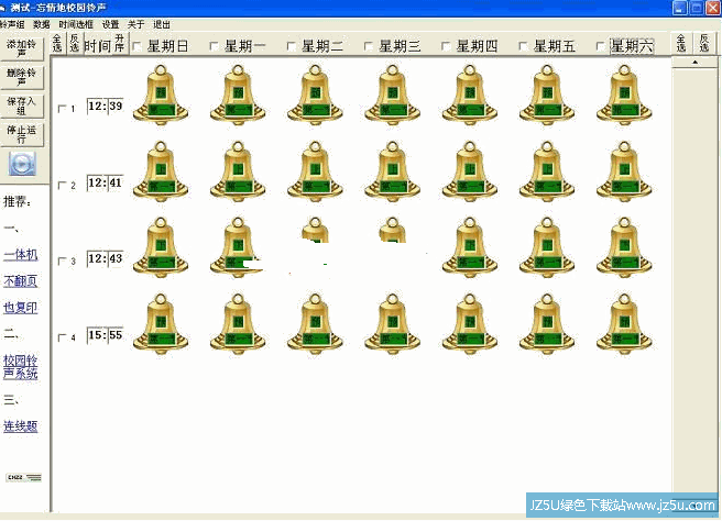 忘情地校园铃声是一款绿色的校园铃声自动播放系统。能够在winxp下定时播放音乐,MP3里的音乐,可以自行替换或者增加。软件操作简单,快来自行组建你的校园铃声系统吧。