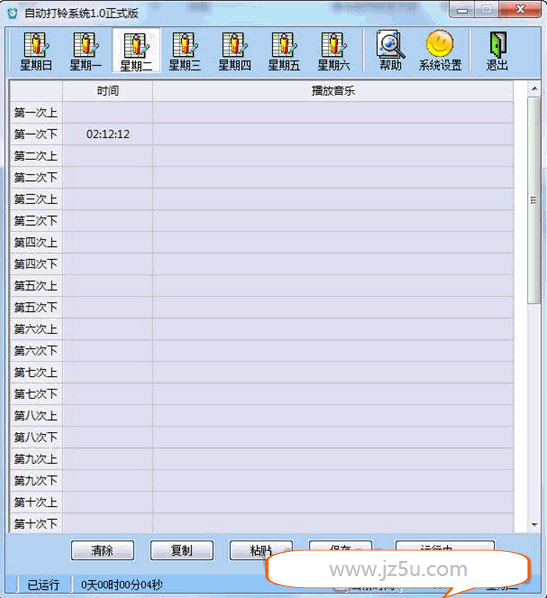 2、设置好每天播放音乐的时间。格式为:小时:分钟:秒钟(00:00:00),不设置为不播放。(设置时可写成:12.12.12系统会自动转换)