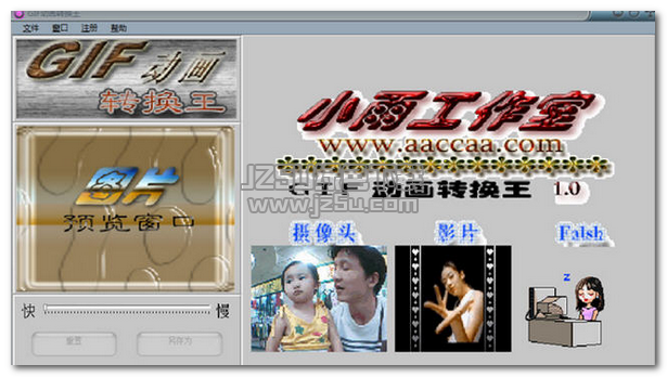 GIF动画转换王是一款可以用来创作表情包。对于有彩屏手机而没有摄影功能的朋友,可以 DIY 一下,做一个简单的gif动画并发送到与Q友聊天窗口,只需几秒钟。欢迎有兴趣的朋友前来jz5u使用!