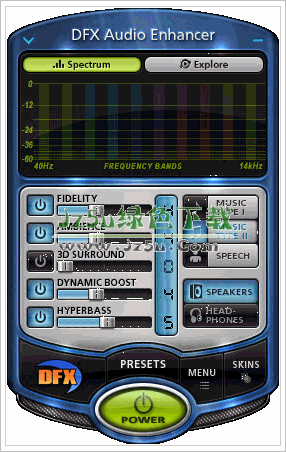 DFX Audio Enhancer特色功能众多,DFX主要包括:3D环绕音响、超重低音、立体声音场、高保真还原、动态增强、为耳机优化、音谱分析器、音乐和语音模式、可定制的皮肤、可定制的音乐预设。