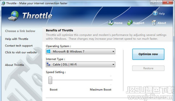 Throttle网络优化工具是一个可以将你的调制解调器连接优化的网络优化工具。Throttle网络优化工具号称可以将您的 Internet 连接速度优化到200% 或者更高。Throttle 可支持14.4、28.8、36、56K、Cable、ISDN、DSL等各种Moedem.Throttle 可以使用户的拨号连接更稳定和减少重新连接的次数, 这意味着您可以更快地和浏览 Internet。欢迎大家来jz5u体验!