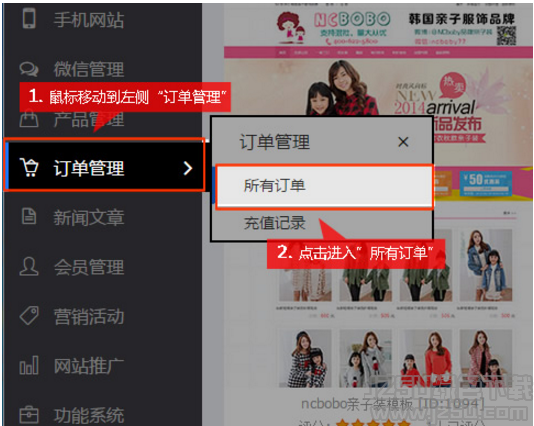 1. 鼠标移动到左侧菜单订单管理 ,点击所有订单 :