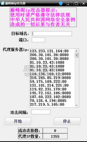 巅峰阁ip攻击器是一款绿色的电脑IP攻击小工具。看别人不爽又不想正面冲突,可以攻击他电脑呀,巅峰阁ip攻击器界面小巧、操作简单,只需要输入目标域名和端口,选择攻击间隔,就能使目标IP快速掉线,屡试不爽!欢迎大家来jz5u下载体验!