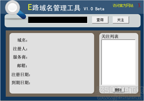 E路域名管理工具是一款简单方便实用的域名地址管理工具。该软件可以随时查询域名的注册人、服务商、邮箱、注册时间、到期时间等等信息,可以对域名添加关注,随时关注心仪域名的情况,专为网站工作人员准备。欢迎大家来jz5u下载E路域名管理工具体验!