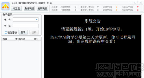 温州网络学堂学习助手是针对温州网络学堂开发的课堂挂机辅助工具。看到好多小伙伴在找课堂挂机软件,这里给大家带来温州网络学堂学习助手,温州网络学堂学习助手可以帮助要学习网络学堂课程的同学进行挂机,就算人不在电脑前也能自动学习课程,十分好用。欢迎大家来jz5u下载体验!