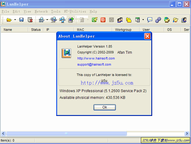 局域网辅助性工具,具有快速扫描网络,网络唤醒,远程关机或远程重启和取消关机(不需要客户端),发送消息,检测主机等功能和特点,并使用了多线程, XML等技术。(1)强力扫描引擎,可以快速获取网络上主机的主机名、工作组、IP地址、MAC地址、共享文件夹、共享打印机、隐藏共享、共享文件夹是否可写或密码保护、系统 (Windows)版本等信息,可以按工作组来扫描整个局域网或指定的多个工作组,或者指定一个IP范围来扫描网络。(2)网络唤醒远程主机。通过扫描得到其他主机的MAC地址后,以后就可以在对方关机的情况下将其唤醒,前提是对方没有断开电源连接。(3)远程关机和重启。不需要在对方安装任何客户端程序,只要有适当的权限就可以通过网络关闭或重启对方电脑。(4)在局域网中发送各种消息。有多种发送方式,可以发送给列表框中的多个主机或工作组、整个局域网等等。(5)全面使用多线程技术改写,多线程并发扫描,速度比以前版本大大提高。(6)使用XML来保存或显示扫描结果,扫描结果可以通过XML样式表XSL的处理后以排序表格的形式直接打开在浏览器中显示,方便查看。 (7)快速查看主机是否,并方便的访问主机或其共享资源。