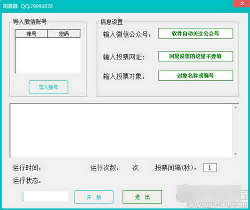 温馨提示:因为微信投票包含了很多第三方投票系统插件,不同的投票系统限制不同,所以此刷票器的适用范围有限。根据作者测试,目前只可以对80%以上的微信投票能进行自动刷票。如果这个刷票器不适用你的网络投票活动,如果你需要的微信刷票的票数比较多的话,50票以上
