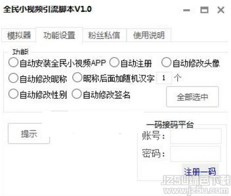 爱思全民小视频引流脚本非常专业而实用的引流脚本工具。网络上存在很多的脚本工具,而小编为诸位用户带来的是全民小视频引流脚本版,爱思全民小视频引流脚本版可以帮助用户进行全面小视频自动安装APP,支持自动ZC账号,自动修改头像,性别,昵称,签名等,并且压缩包内附有详细的使用教程,若是你感兴趣的话不妨来jz5u使用吧!