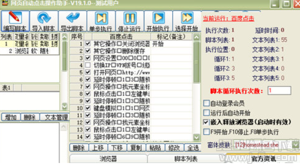 网页自动点击操作助手是一款能够自动刷新网页的辅助工具。对于经常需要进行刷新网页的朋友可以使用网页自动点击操作助手,这个软件的功能非常的强大,可以自动刷网页点击数,让用户的双手得以释放,网页自动点击操作助手可以支持前台和后台的鼠标点击和键盘模拟,使用起来非常的简单,有需要的朋友就不要再犹豫了。欢迎大家来jz5u体验!