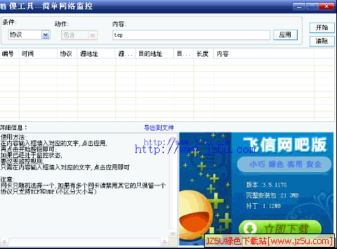 用于监控本机网络数据。使用VC6编写,简单轻巧 ,支持windows2000/XP/2003/Vista,Windows2007没有测试支持协议选择,收发端口选择,收发IP地址选择以及按内容监控。