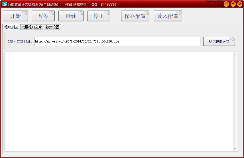 2.运行主程序“Universal article body extraction(自动版).exe”设置相关信息,保存配置,单击“开始”。