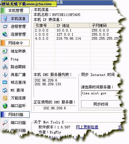 实现单个或批量进行正/逆向解释 DNS。另外还有 IP 地址换算和有关子网掩码的计算。