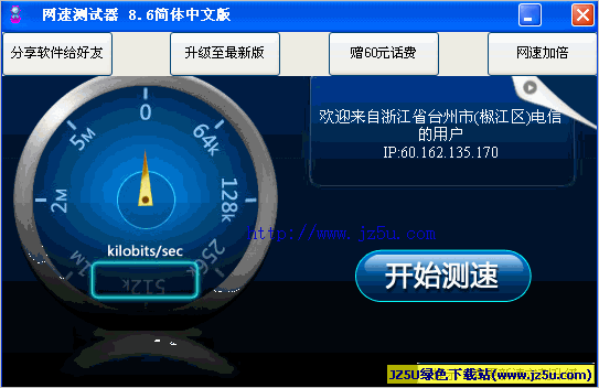 网速测试器8.6简体中文版可以测试本地的真实上网速度,还能显示本机ip地址,接入服务商等信息。