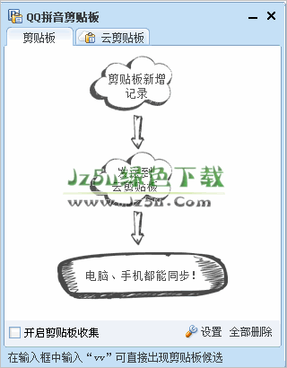 QQ拼音剪切板可以收集文字也可以收集图片,这个自己设置即可,单击记录内容即可复制粘贴。绿色版软件,界面很简洁,还有云剪贴板功能,不过是需要QQ会员的,大家酌情使用吧。