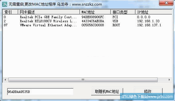 无需重启更改MAC地址程序是一款绿色安全、功能强大、兼容性好的MAC地址更改工具。更改网卡MAC地址工具-不需重启即可生效,更可取随机MAC地址,你懂得。