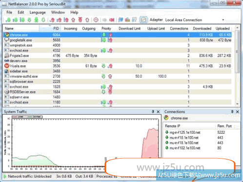网络带宽限制NetBalancer是一款网络带宽限制软件,它让您设置您的Internet应用的网络带宽限制软件。NetBalancer允许您设置的限制和上传和/或一个基于每个应用的基础上的速度,并阻止所有网络流量为选定的进程的优先事项。该方案还提供了有关的所有程序使用互联网的详细信息,他们有多少数据传输以及IP地址连接到它们。的版本有一些限制,但只允许您设置最多5个进程在一个时间限制或优先事项,但是这应该是足以应付一般用户