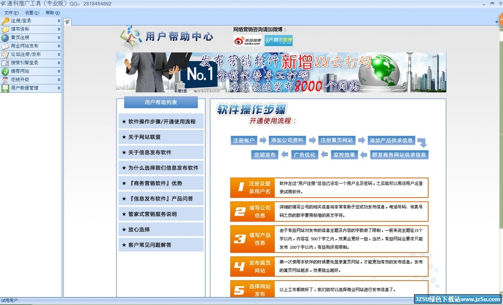 5.全程监控发布过程保证效果――提供客户端后台自主管理,本地安装安全可靠,软件可批量自动注册网站会员和群发供求信息, 全程监控发布过程保证效果,此项功能同类型软件无法比拟;