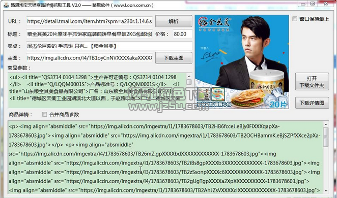 本软件可以获取淘宝或天猫上某个商品页的详情介绍源码,一键商品介绍图片,轻松复制淘宝或天猫商品到自己的网店或ecshop等独立商城,快速采集价格、卖点、参数等商品信息