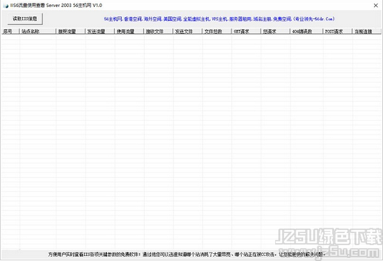 iis6网站流量监控软件是一款能够实时查看流量数据的软件。通过iis6网站流量监控软件你可以知道现在的流量情况,可以将详细的流量提供给用户。如果你需要查询详细的流量信息,那就来jz5u下载!