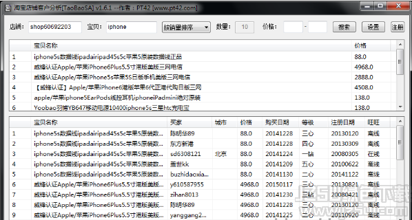 淘宝店铺客户分析是一款方便实用且的淘宝营销工具。软件能够根据店铺和宝贝名称自动筛选出未匿名购买的买家ID,通过旺旺、站内信箱向其发送推广消息,增加店铺的销量和流量。欢迎大家来jz5u下载淘宝店铺客户分析体验!