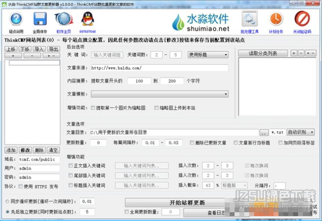 ThinkCMF站群文章更新器是一款非常实用的群文章更新器软件。这是专门为ThinkCMF内容管理框架开发的网站服务应用工具,让您更好的更新网站的文章。可以将一批文章自动发布到ThinkCMF的文章分类下。并且软件的操作十分简单,即使是新手用户也可以很快上手。非常不错的一款软件,如果您有需要可以在jz5u这款ThinkCMF站群文章更新器。