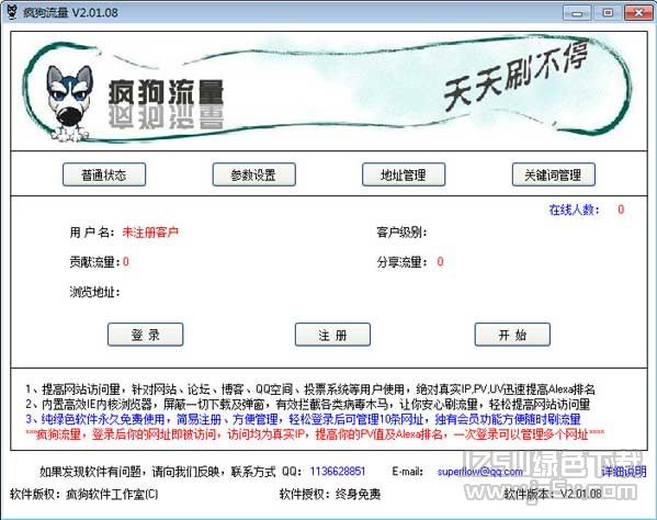 绿色软件界面友好、功能实用、操作方便、终身、智能全自动,只要您电脑开着的就可以刷到您的网站!