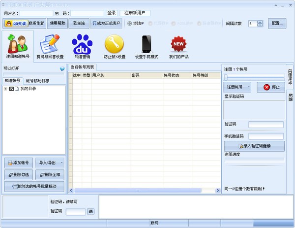 百度知道促销大师是一个全自动的百度知道问答工具,包括账户注册,自我回答,自我回答,自动采用,自动批准,单一多重答案,多个答案,单个问题和单个问题。单一批准和其他不同功能。自动IP更改,可以使用ADSL模式,代理模式,路由器到IP模式,操作简便。长期使用这个工具,可以在短时间内提升一个高级知道账号,然后就可以随意发送链接中的信息,发送大量信息不被删除。