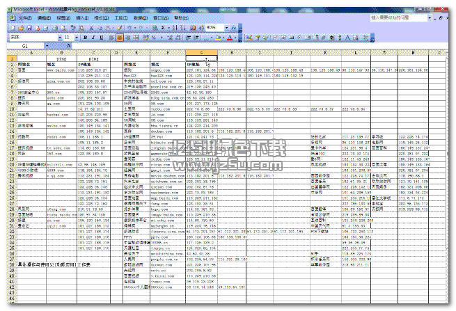 3、自动ping只会测试工作表[数据表格]中第一行带ping字样的列;