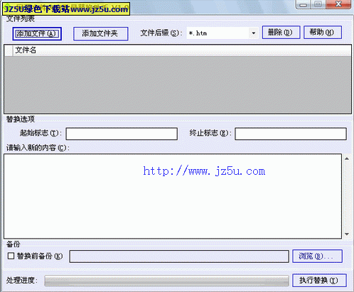 本程序实现对网页文件,文本文件进行批量替换,特别适用于对某些标志范围之内的内容进行替换.说明如下: