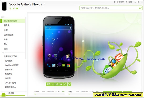 豌豆荚手机精灵是一款贴心的手机助手,目前支持android手机系统,通过它您在电脑上就能方便地管理手机中的通讯录、短信、应用程序和音乐,并对重要资料进行备份和恢复。