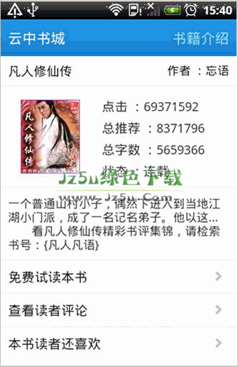 云中书城for Android是盛大文学推出的一款精品手机阅读应用,是一个可随身携带的电子书店,海量图书可供用户随意下载,提供轻松舒适的阅读体验。随时随地,畅享阅读,尽在云中书城for Android。