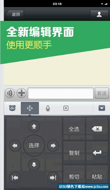 新增加编辑面板,光标移动只需一点~复制、粘贴、全选、剪切更加方便快捷;此外,工具条支持左右翻动,并支持自定义顺序哦