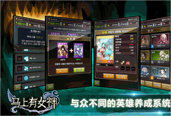 通过强化和合成让心爱的女神们变得更强大,尽享更华丽、更强大的技能。