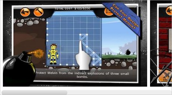 保护玩偶游戏中需要不断的设计出坚固的建筑来保护你的玩偶梅尔文,美每个关卡出来玩偶都会处于一种极度危险的状态,必须使用仅有的材料木头进行建造,记住花费越少,得分就会越高,花费超出预算,就会提示玩家花费太多而不能过关。据说理财专家能用一块钱买到10块钱的东西哦,像他学习吧