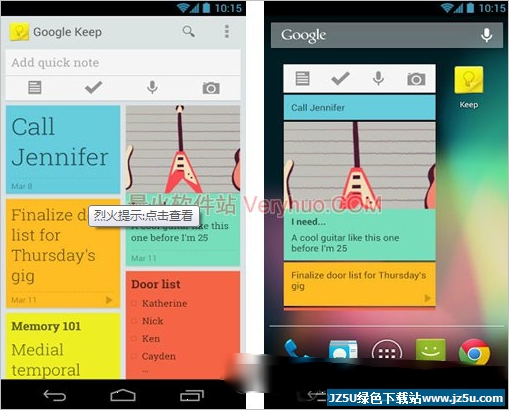 Keep for Android 是基于谷歌云存储的笔记软件,类似于有道云笔记,Google Keep 借助 Drive,Google Kppe 可以实现跨设备间的同步,这款应用适用于 Android 4.0 及以上的设备,在 Android 4.2 中,你还可以在锁屏情况下快速添加笔记。