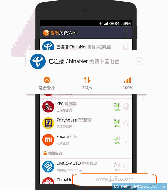 摆脱繁琐上网流程,无需帐号密码,支持移动/联通/电信手机一键连入ChinaNet,走到哪,连到哪!