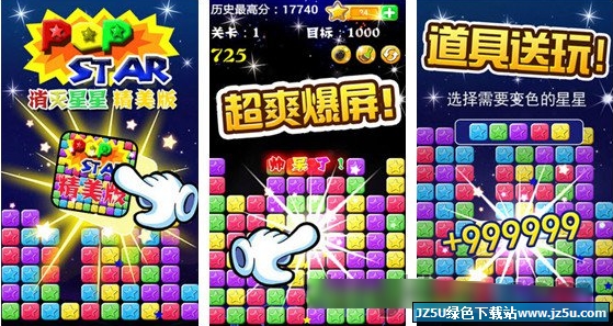 消灭星星安卓版是一款非常好玩的休闲类游戏,它以简单的玩法和华丽的界面深受广大玩家的喜爱,玩家需要达到指定的分数即可完成通关,它和以往消除游戏不同的是不可以乱点,非常考验人的脑力。赶快来下载挑战一下吧。