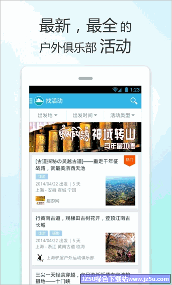 徒步去旅行安卓版是一款安卓系统上的社交旅游类手机软件,徒步去旅行能找到当季的户外活动,精彩刺激的游记和故事,丰富的路线库,专业的户外领队和俱乐部,最热情的驴友,徒步去旅行主要是为广大驴友们分享徒步旅游的计划和攻略,提供方便,简单,实用的移动互联网产品服务,建立属于自己的移动户外社交圈。
