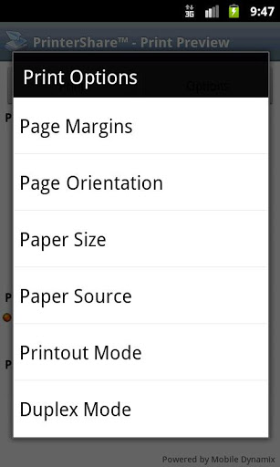 PrinterShare(移动打印):是一款可以从手机直接打印文件的手机应用软件,PrinterShare(移动打印)可以从您的手机直接打印SD Card中的档案(DOC,DOCX,XLS,XSLX,PPT,PPTX,PDF,TXT)和Google文件,Gmail,照片,通讯录,行事历,简讯/MMS, 通话记录及网页到你旁边或世界任何地方的打印机。它是一个独立的小应用程式,只是要给解锁手机的高级功能。