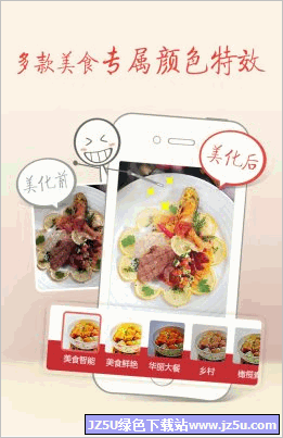 1.拍美食:既可单张拍摄美食,也可用拼图模式组合各样美食,独创的美食智能特效令美食照片瞬间美化,更有美食变白、美食鲜艳、美食亮丽等一键美化功能、神奇冒烟特效,及多款美食相框让每个使用者立刻成为朋友圈中的美食达人!